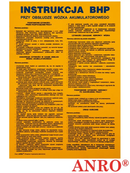 Instrukcja BHP „Instrukcja BHP przy obsłudze wózka akumulatorowego”.